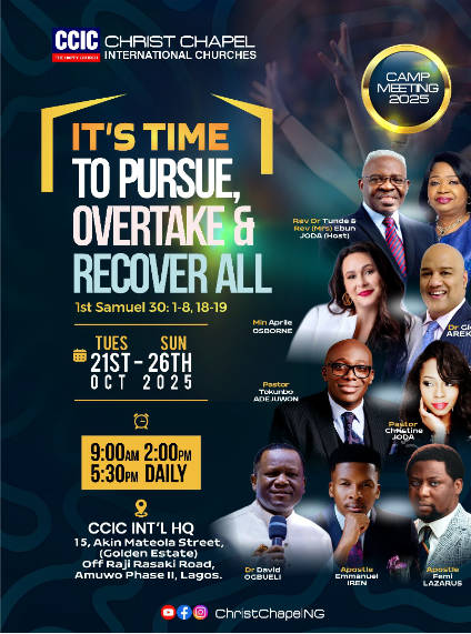 The annual camp meeting of the Christ Chapel International Churches is taking a new dimension this year with an array of young ministers scheduled to minister in the six-day event.starting from October 21 to October 26.